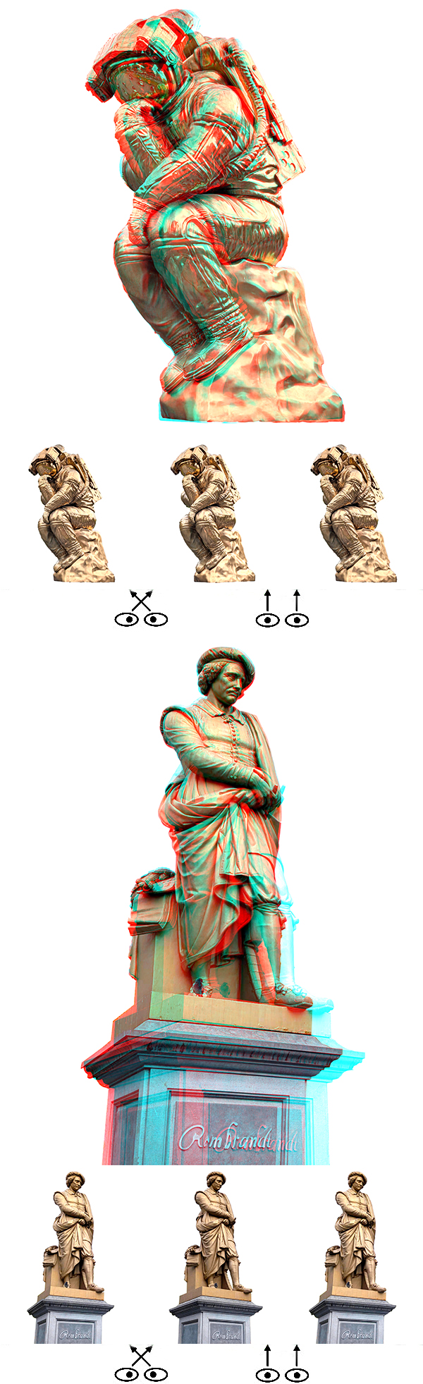 I took these shot cha-cha style with my Google Pixel 9 Pro cellphone, shooting the left eye image and then sliding over approximately for the right eye shot. I slid over 8-10 feet for the upper shot and perhaps 8-10 inches for the lower shot. From there it was auto-aligned in StereoPhoto Maker, and cleaned up a little more in Photoshop.