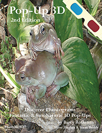 Originally published in 2007, this second edition has been remastered and rewritten with six images not in the previous version. This is a book of phantograms for kids 3-99. 8-1/2" x 11" in size and featuring thirty-two pages of 3D wonder. Ttext is geared for ages 8 and up, describing the basic nuts & bolts of how 3D imagery works. Almost all of the images are viewed with standard red-cyan 3D glasses (2 pairs are provided with the book).